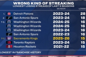 国王本赛季的15连败已创队史最差纪录